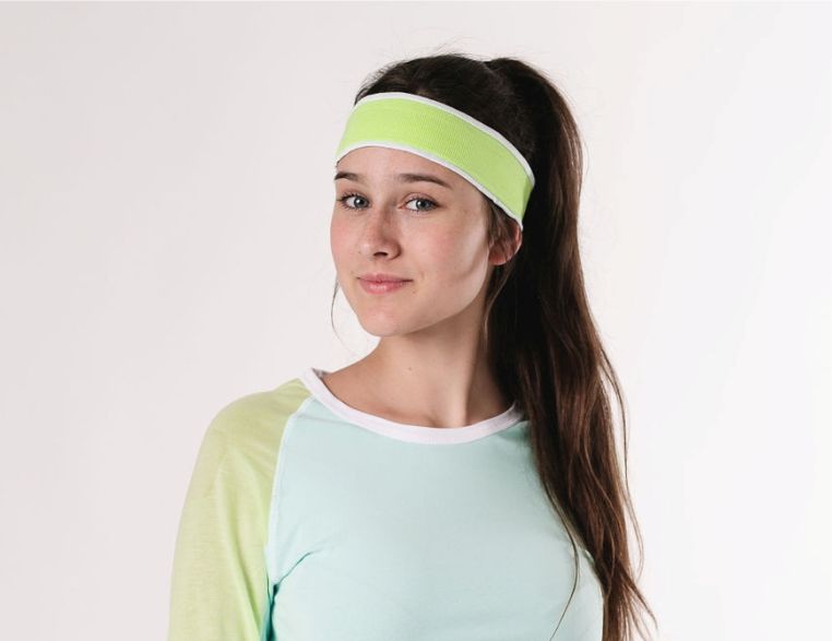 Pružná příjemná čelenka ze 100% luminiscenčního materiálu vyzařujícího jemné světlo za šera a ve tmě, podšitá funkčním materiálem, univerzální velikost pro děti i dospělé