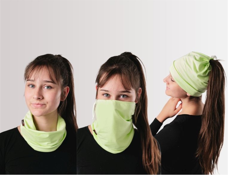 Univerzální nákrčník z příjemného dvojitého materiálu, 50% luminescenční PES a 50% viskoza.